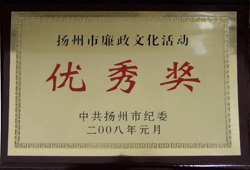 > 2008年揚(yáng)州市廉政文化活動優(yōu)秀獎