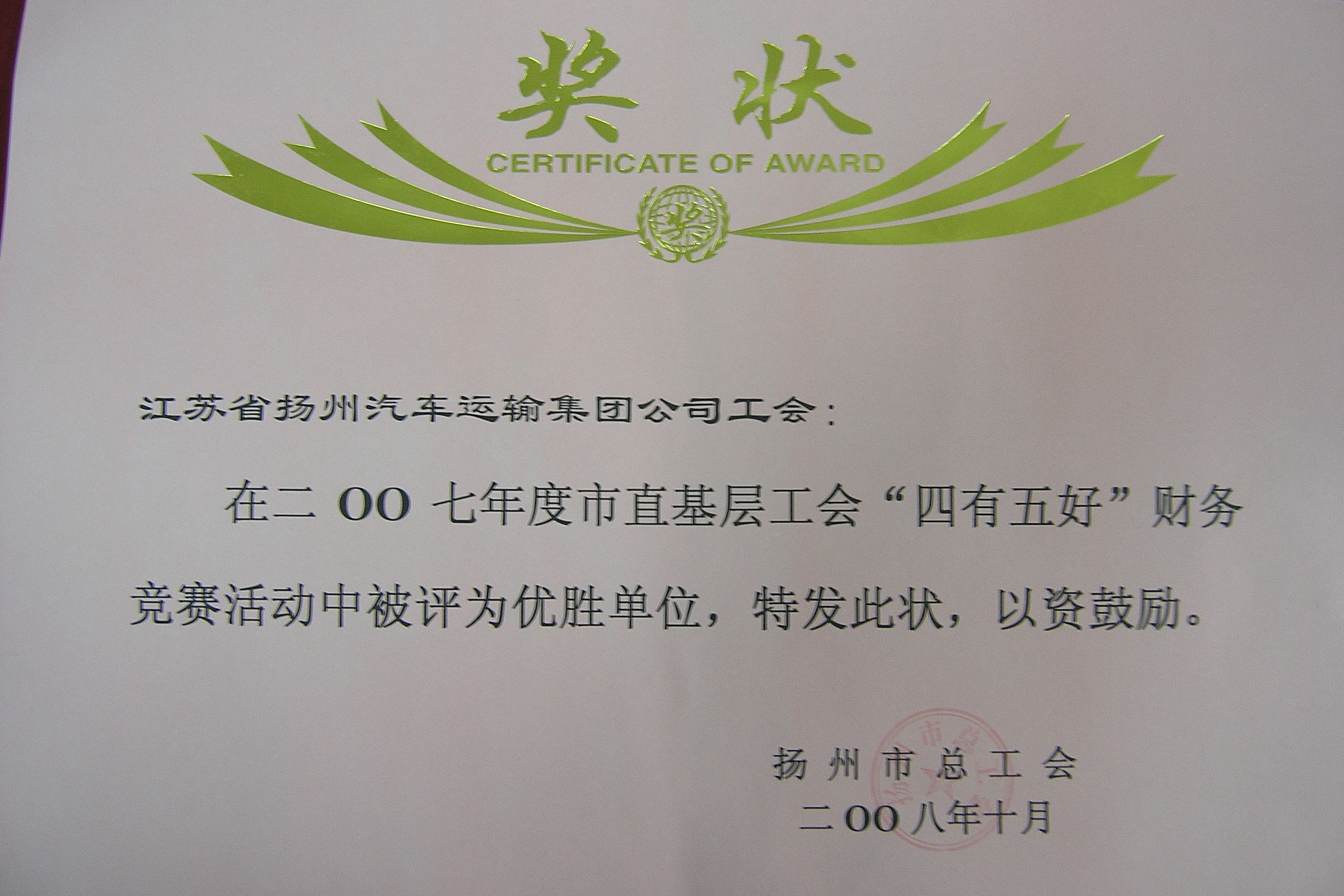 > 工會(huì)獎(jiǎng)狀