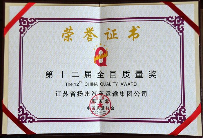 昨天上午,第十二屆全國追求卓越大會在北京京西賓館舉行。會上,集團(tuán)公司榮獲質(zhì)量經(jīng)營管理最高榮譽(yù)——“全國質(zhì)量獎”,全國僅6家單位獲此殊榮,也是全國交通客運行業(yè)首家獲獎單位。全國政協(xié)副主席張榕明、交通運輸部副部長高宏峰、中國質(zhì)量協(xié)會會長賈福興為我司頒獎。