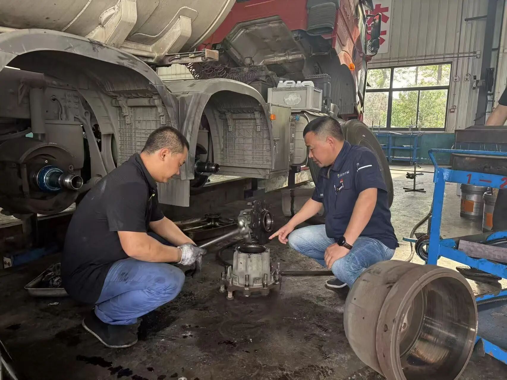 說話間,一輛“疑難車”駛?cè)霃S區(qū)。駕駛員反映車輛底盤異響嚴(yán)重,伴有灼燒味。熊俊與同事立即上前,共同試車排查。最終,他們發(fā)現(xiàn)是制動(dòng)鼓因散熱不足導(dǎo)致變形摩擦。確定維修方案后,團(tuán)隊(duì)迅速更換配件,僅用兩小時(shí)就排除了故障。事后回訪時(shí),駕駛員連連稱贊:“這下可以安心跑國慶班次了!”