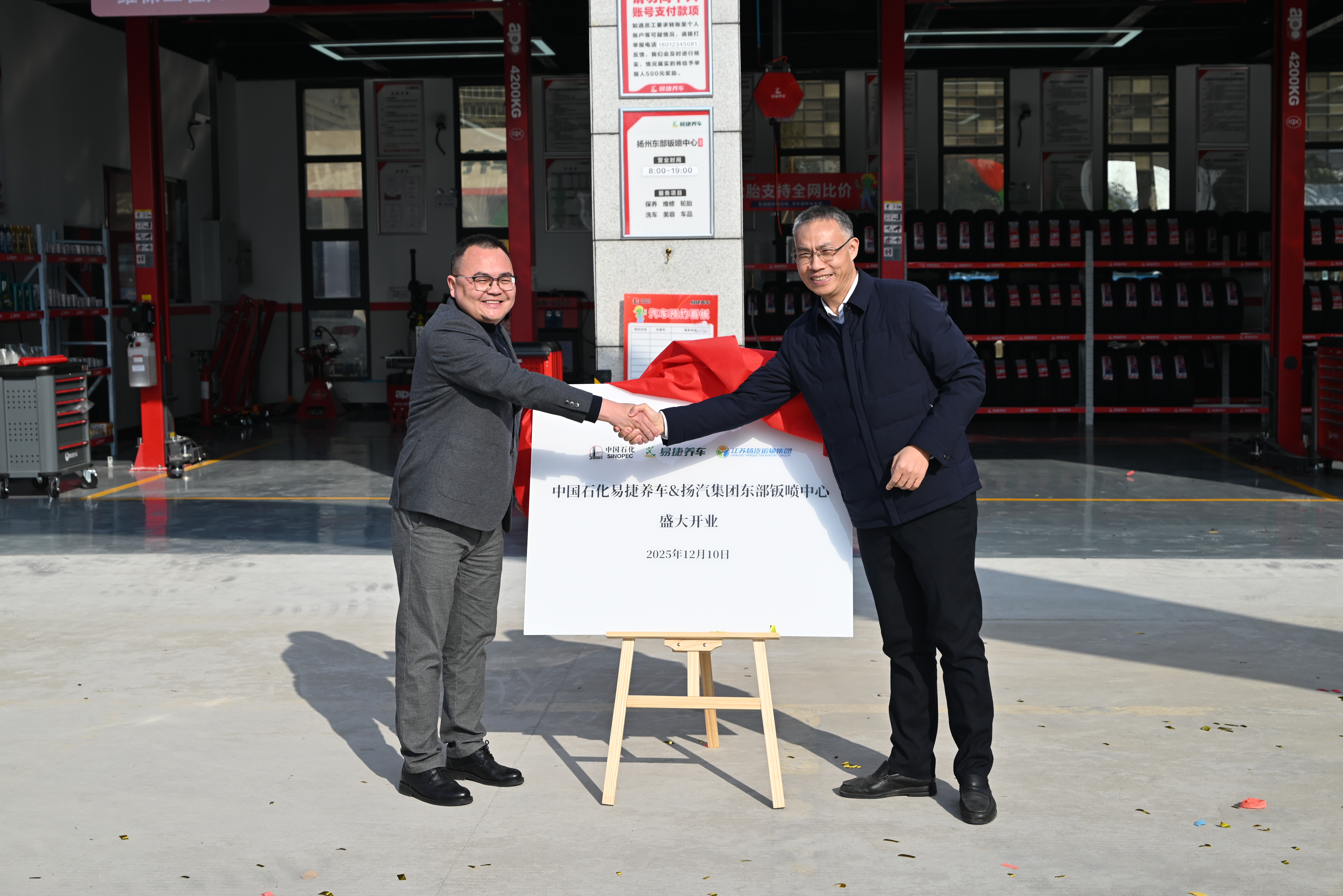 12月10日上午,揚(yáng)汽集團(tuán)與中國石化銷售股份有限公司江蘇揚(yáng)州分公司合作共建的“易捷養(yǎng)車鈑噴中心”在揚(yáng)州東區(qū)智慧園舉行揭牌開業(yè)儀式,中石化揚(yáng)州石油代表、經(jīng)理孔令江,副經(jīng)理吳杰宏,市交通產(chǎn)業(yè)集團(tuán)黨委委員、副總經(jīng)理李崇,揚(yáng)汽集團(tuán)黨委書記、董事長萬雷,黨委副書記、副董事長、總經(jīng)理劉俊等相關(guān)負(fù)責(zé)人出席活動(dòng),共同見證這一央地國企協(xié)同發(fā)展的新成果。