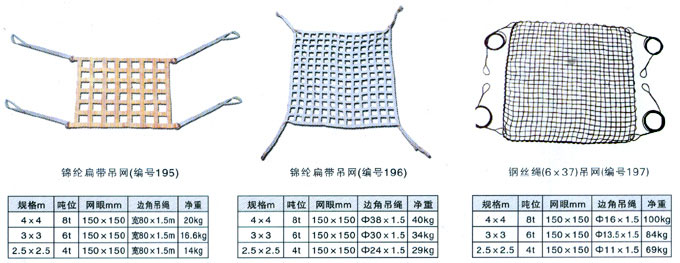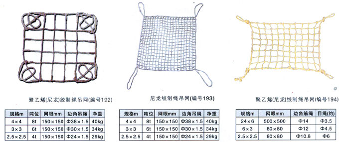 吊網(wǎng)有:吊貨網(wǎng),尼龍吊網(wǎng),鋼絲繩吊網(wǎng),尼龍扁帶吊網(wǎng),鋼絲吊網(wǎng),鋼纜吊網(wǎng),鋼纜吊貨網(wǎng),鋼絲吊貨網(wǎng),PP繩吊貨網(wǎng), 鋼絲繩吊貨網(wǎng),尼龍繩吊貨網(wǎng),尼龍繩吊網(wǎng),吊裝用吊網(wǎng)、防護用吊網(wǎng),尼龍扁平吊網(wǎng),扁帶吊網(wǎng),錦綸帶吊網(wǎng),錦綸帶吊貨網(wǎng), 繩索吊網(wǎng),貨柜網(wǎng),貨物網(wǎng),碼頭吊貨網(wǎng),尼龍吊貨網(wǎng),編織帶吊網(wǎng),港口吊網(wǎng),休閑吊床(吊網(wǎng)),編織繩網(wǎng),特種吊網(wǎng),化 纖吊網(wǎng),尼龍吊裝網(wǎng),起重吊裝網(wǎng),聚乙烯(尼龍)絞制繩吊網(wǎng),尼龍絞制繩吊網(wǎng),錦綸安全網(wǎng),錦綸扁帶吊網(wǎng),尼龍扁帶吊網(wǎng)。